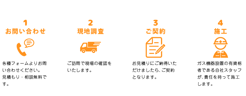 ガス機器設置の有資格者である自社スタッフが責任を持って施工します。